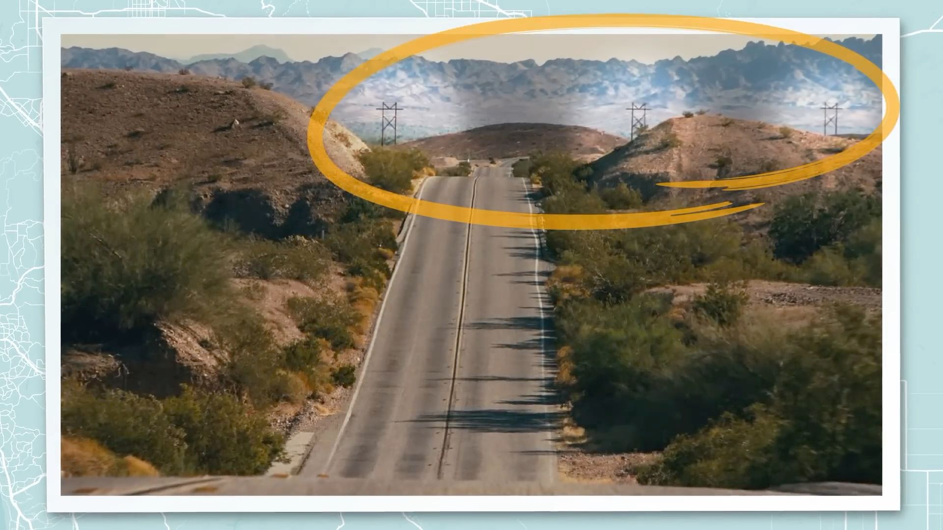 Before the road trip began, Joey had a straightforward lead: a story in Variety quoting production designer Florencia Martin that much of the driving was filmed outside Borrego Springs near the Salton Sea. Locals and crew nicknamed parts of the area the "River of Hills" for the rolling, cinematic terrain used in multiple shots. Using Highway 78 as the primary axis, the team planned to follow the obvious hills and look for matching mountain ranges, road geometry, practical set pieces, and even the little details that give away a location—power lines, merge signs, park entrance signs, and skid marks.